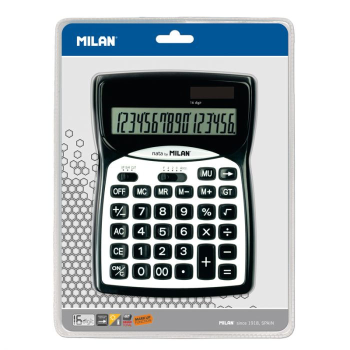 Blister grande calculatrice noire à 12 chiffres avec bouton Check grand format